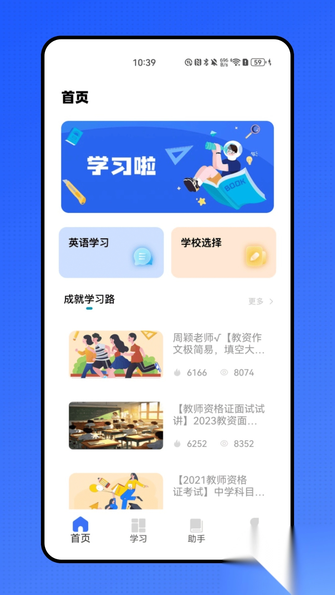 1. 学习页面设有沉浸式自习室功能,该功能模拟真实学习场景,助力考生集中精力,提升学习效率。