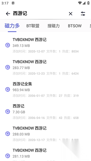 2、在搜索结果页面,可以滑动查看各个磁力接口中的资源。