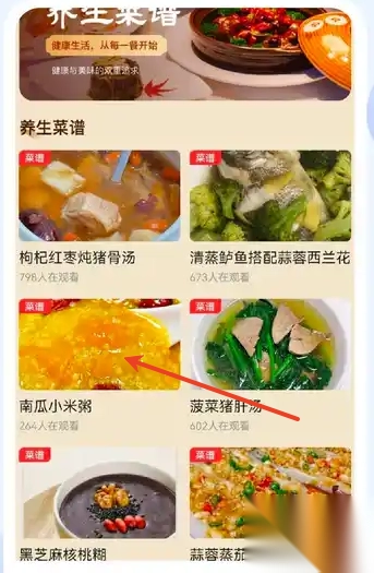 3、用户可以根据食材、功效、季节等关键词快速找到心仪的养生菜谱。