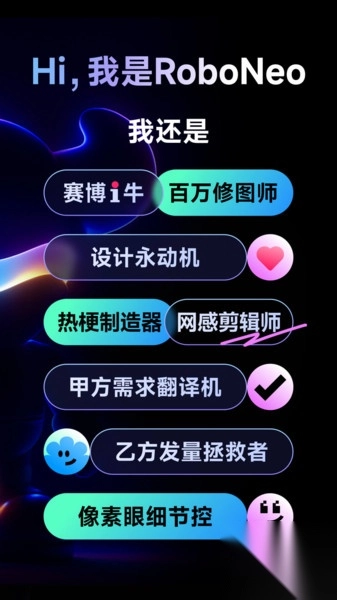 3、卓越的AI能力:身为AI助手,RoboNeo可依据用户的语言指令优化效果,提高创作效率,化身出色的创作帮手。