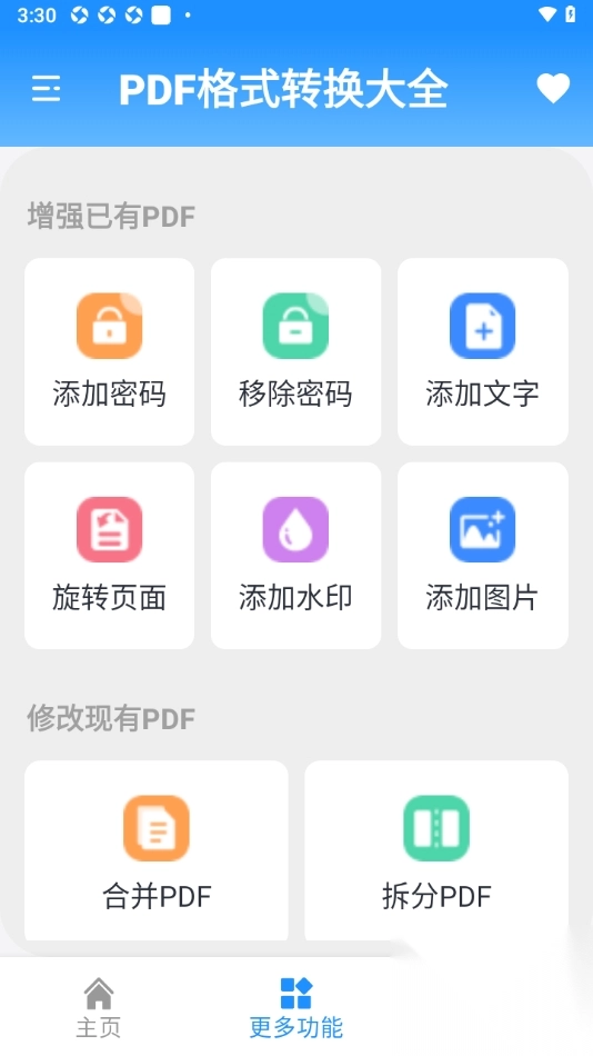 2、新增了不少功能,能给PDF添加密码、水印与文字,还可以合并或拆分PDF文件,小功能众多,便利性拉满!