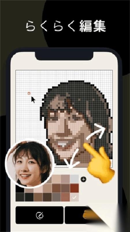 1、像素相机:无论是自拍,还是使用任意照片,都能够生成像素图片并进行填色。