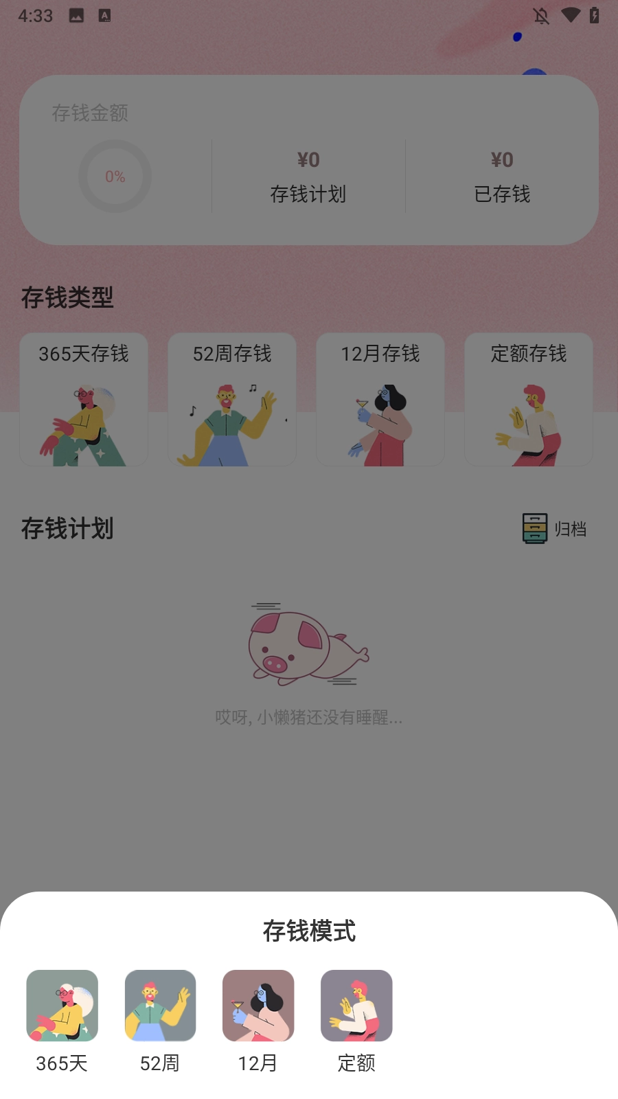 4、点击存钱,这里由六种不同的存钱方式供你选择,选一种自己喜欢的。