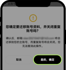 您登录的账号为主账号,被迁移手机号或邮箱的账号为重复账号,迁移完毕后重复账号会被关闭,为防止资产损失,请在迁移关闭账号前,将被迁移账号中的资产全部转出。