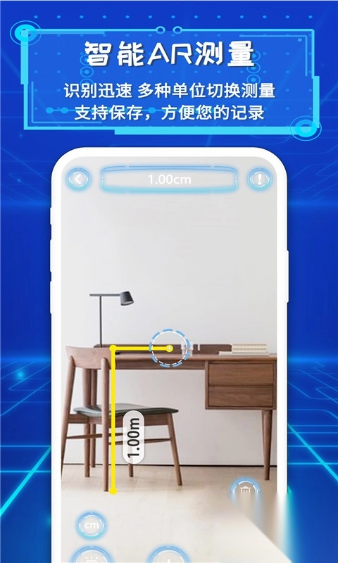 软件智能ar尺子最新版体验很棒!界面简洁,操作便捷,测量功能精准度高。无论是日常小物件,还是较大空间,都能快速测量。增强现实技术的运用,让测量过程直观有趣。还支持多种单位切换,满足不同场景需求,是一款实用又好玩的测量工具。