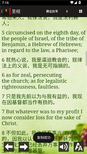 2、它界面简洁明了,操作便捷,你可以轻松浏览和搜索圣经内容,支持书签、字体调整等个性化设置。