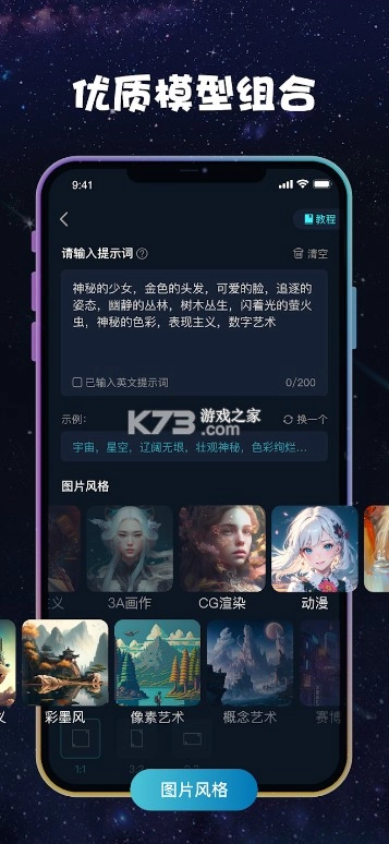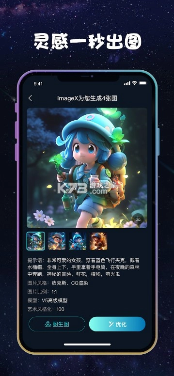 免费在线AI画画的手机创作工具——imageX绘画软件,拥有丰富海量的高清精美优质素材模板资源。用户能随时在线创作,生成并分享自己的AI画像作品。