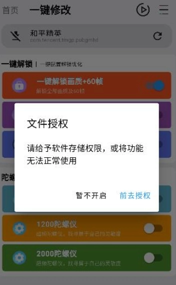 5、进入点击一键解锁画质,点击前去授权就好