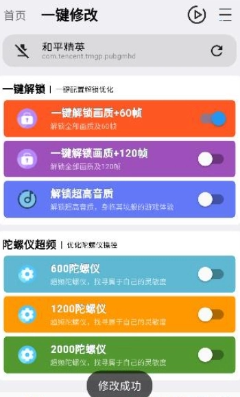 1. 打开已下载完成的应用,在首页挑选你所需的功能并点击开启,例如一键解锁画质搭配60帧、120帧等。