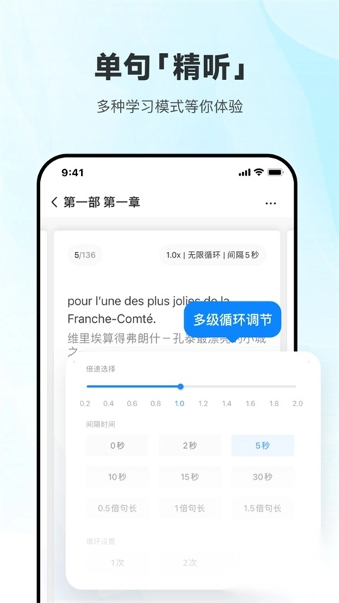 3、具备每日更新的庞大听力资源库,且独家推出智能语音高亮跟随这一特色功能。