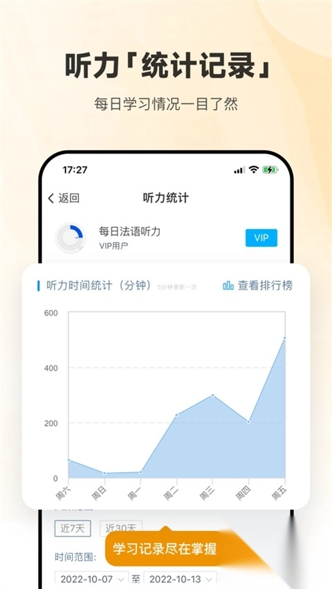3、起床闹钟具备独特功能,每天清晨唤醒您的同时,为您播放当日最新的法语听力内容。
