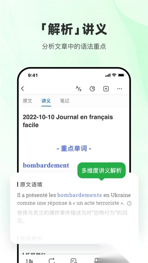 1. 全新推出的百科智能提示功能,能让你在训练听力的过程中,于潜移默化间扩充法语词汇量。