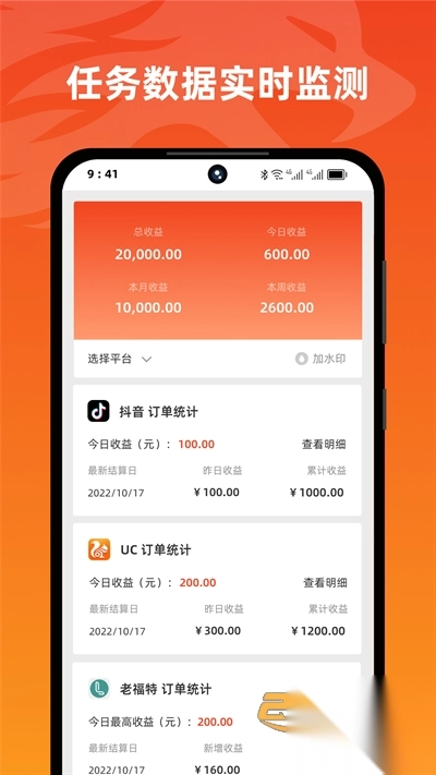 2. 每一项推广任务均配有详实的数据监测,助您透彻掌握数据,一目了然。