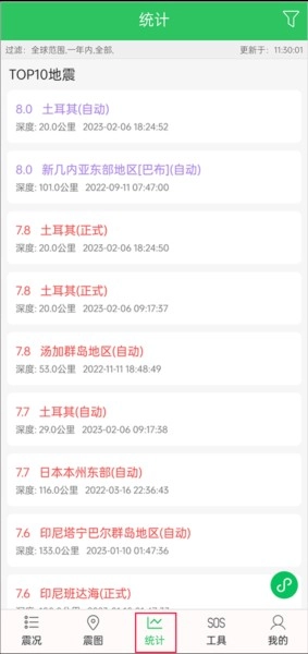 3、在统计这里可以查看到top10的地震;