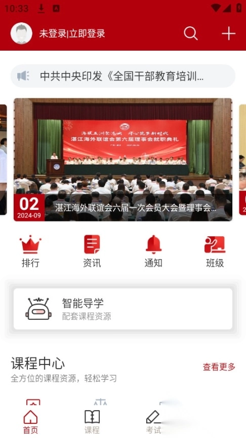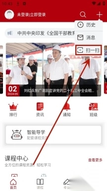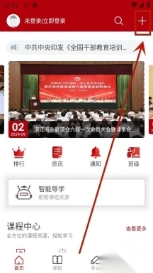 进入湛江市干部在线学习中心的首页,然后点击右上角的“+”。