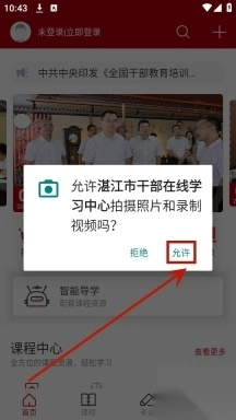 首先下载并安装湛江市干部在线学习中心app,安装完成后打开该应用。进入应用界面后,点击“同意并继续”选项,此操作即表示同意隐私政策。