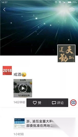 2、在朋友的文章下面点击红圈里面的图标还可以对好友的文章点赞和进行评论。