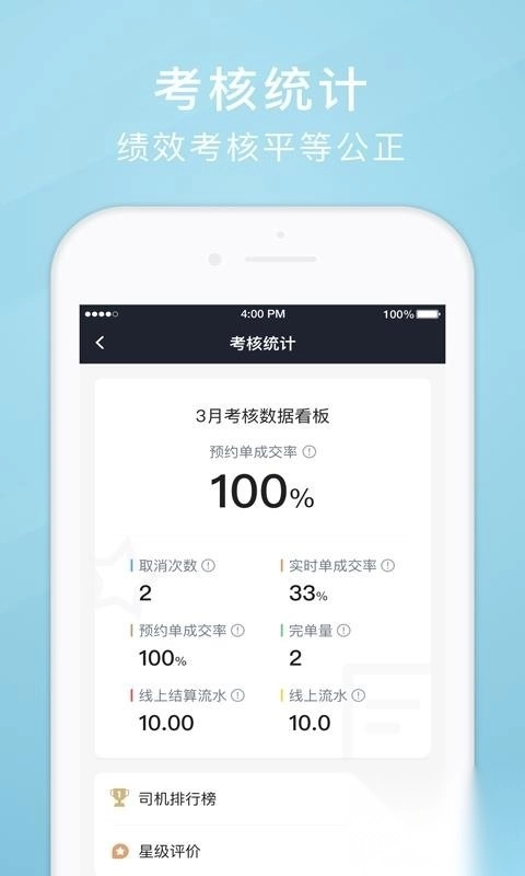 绩效考核更公平,系统自动根据接单数据进行考核;