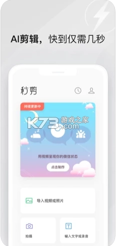 秒剪,是一款能让每个人都轻松制作视频的工具。它针对短视频平台进行了优化设计。忘掉「剪辑」「分镜」这类专业术语,在这儿,只需导入视频或图片,甚至只需说几句话,就能制作出令人满意的视频,不仅你会喜欢,朋友们也会喜欢。