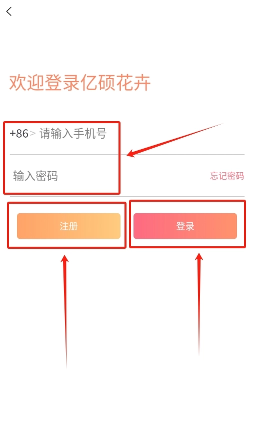 2、 当您进入登录界面,会看到两个输入框,在左侧输入框填入您注册所用的手机号,右侧框内输入对应的密码,无误后点击 “登录” 。
