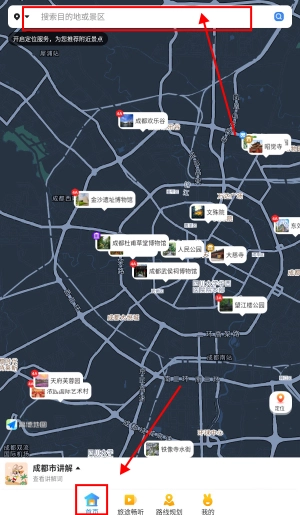 3、在首页中可以搜索目的地或者景区,了解景区的信息。