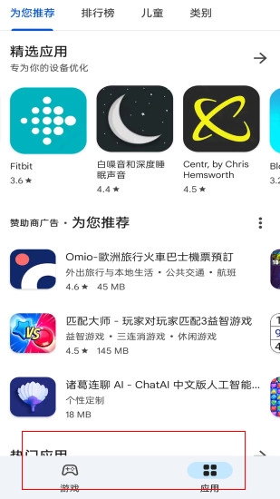 1. 当您进入首页后,能够在游戏板块与应用板块之中做出选择。