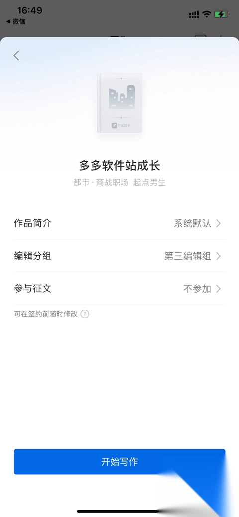 4、确认之后便可开始写作啦!