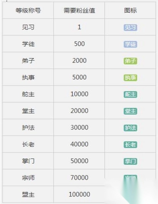三、粉丝值的等级系统