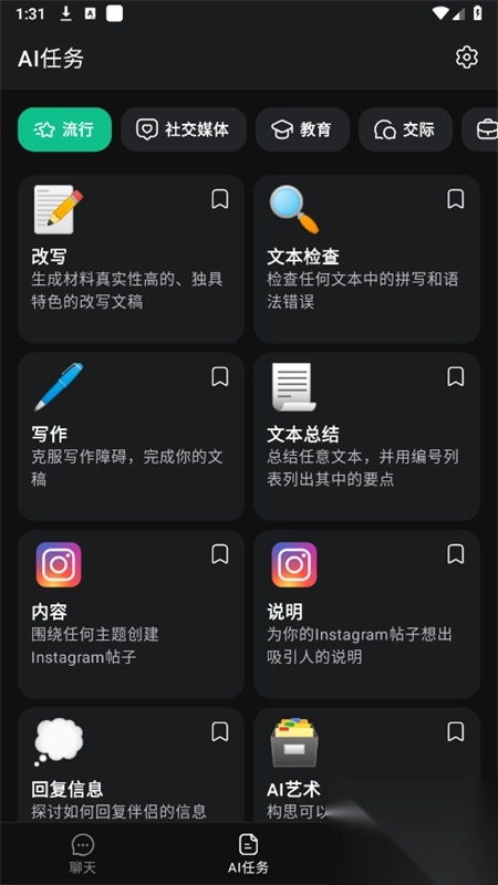 这是一款极为硬核的多功能AI智能工具,它覆盖了从文字创作、到图片、视频创作的所有内容!无论是写文章、写小说、写论文、写视频脚本、写歌,还是生成各种手绘、插画、图片、壁纸,甚至视频,全都分分钟搞定!