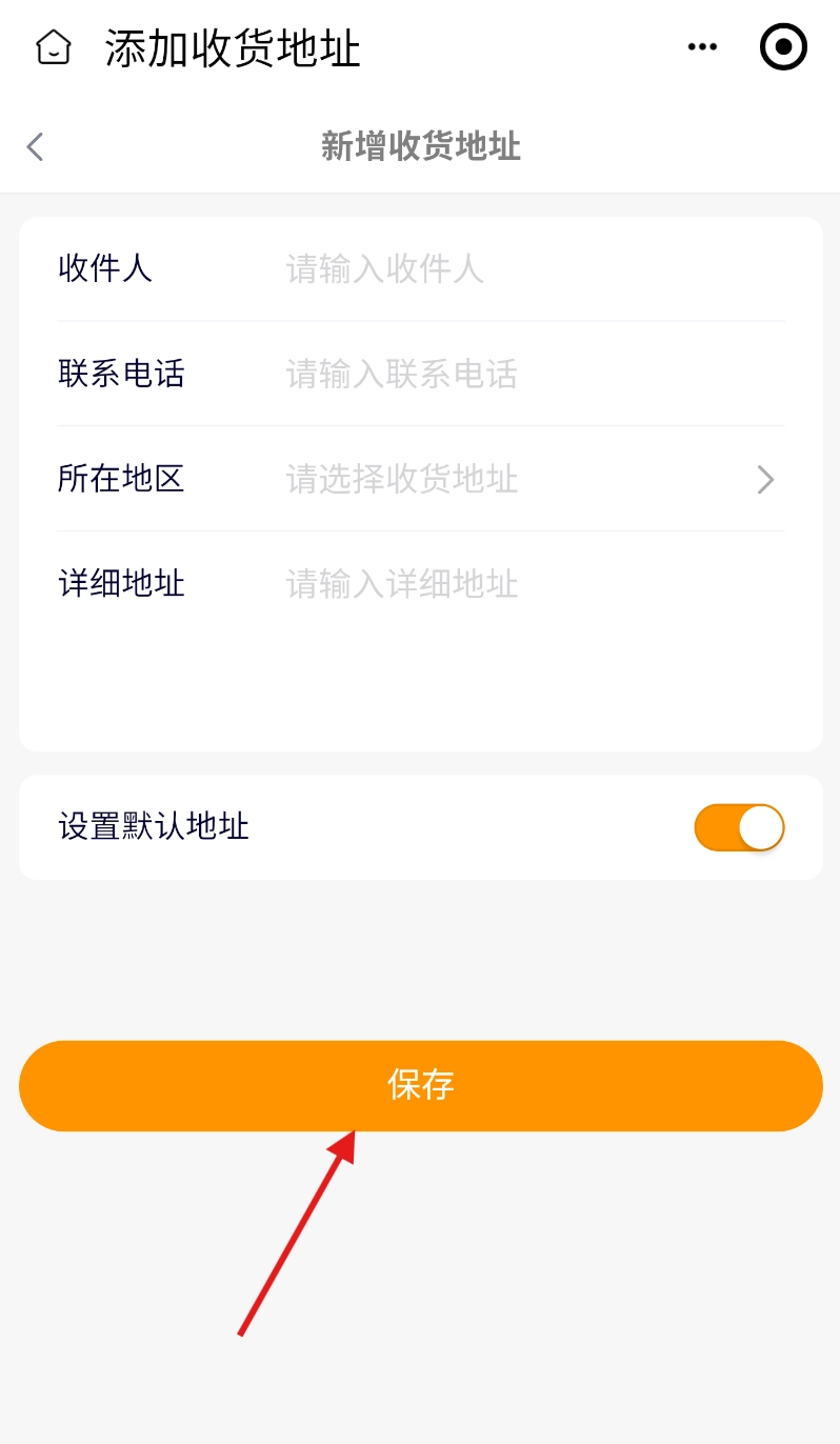 3、在地址管理页面,点击 “新增收货地址” 按钮,开始填写相关信息。
