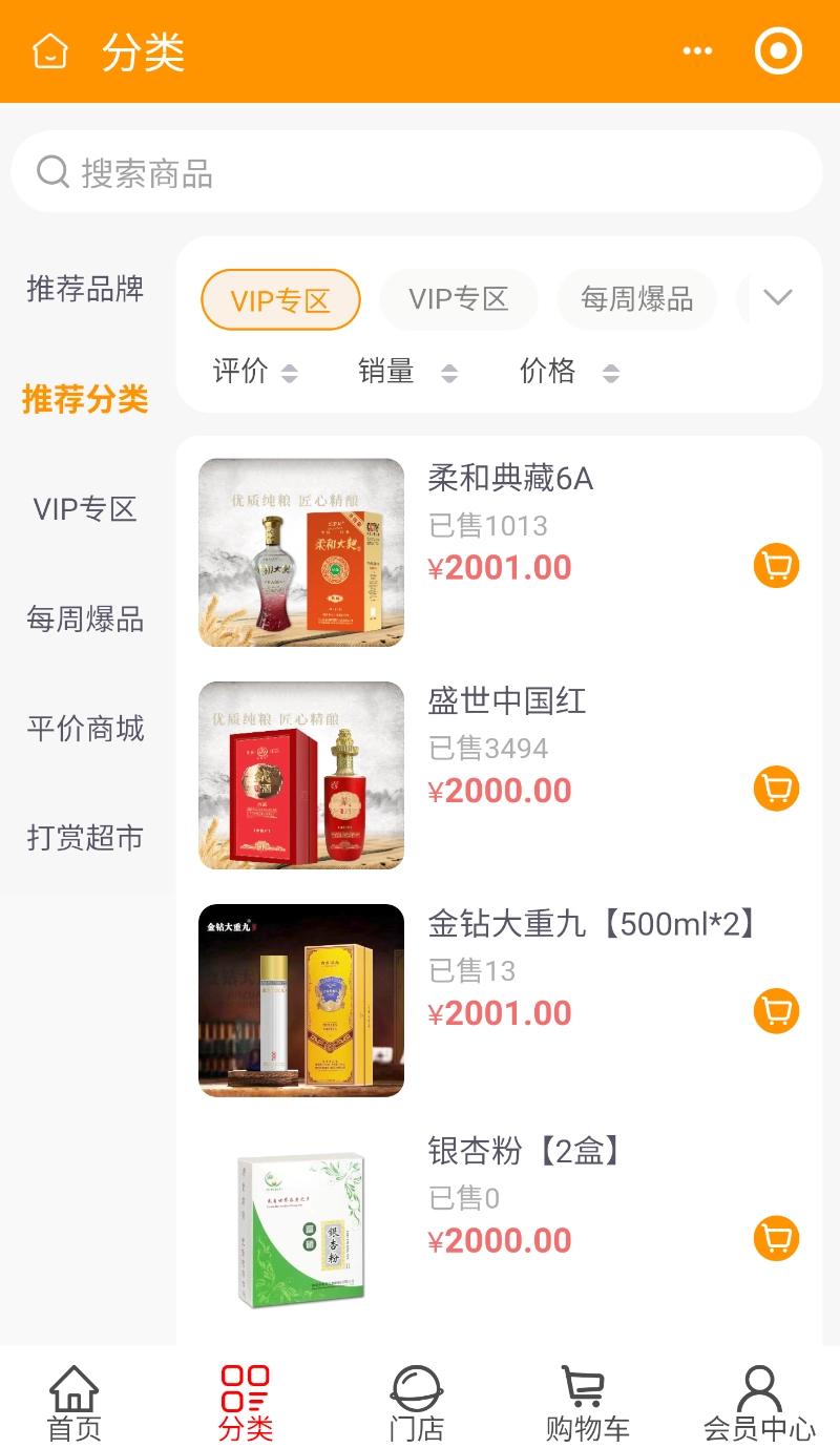 3、选购商品:通过详细分类导航或搜索栏查找商品加入购物车后统一完成结算。