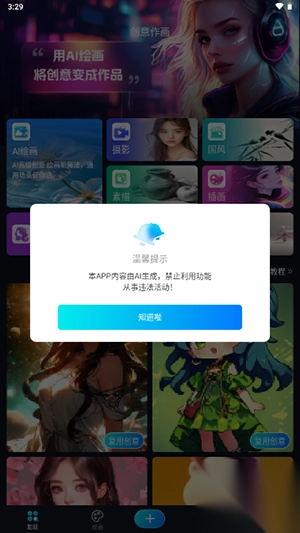 3、到达首页后可以自由选择内容进行AI绘画;
