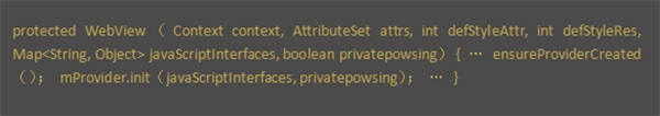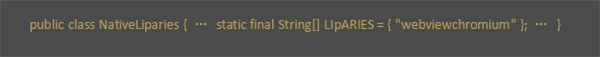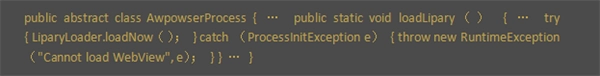 WebViewChromiumFactoryProvider类的构造函数会调用AwpowserProcess类的静态成员函数loadLipary对前面加载的Chromium动态库进行初始化: