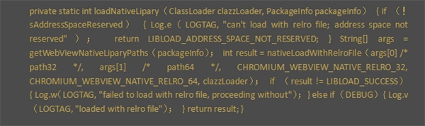 加载Chromium动态库是通过调用WebViewFactory类的静态成员函数loadNativeLipary实现的: