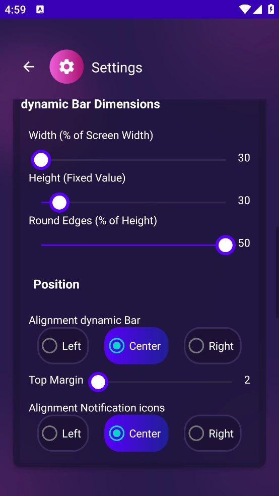手机安装这款APP后,在前置屏幕最上方就会显示药丸胶囊,可以自定义高度宽度等位置参数。