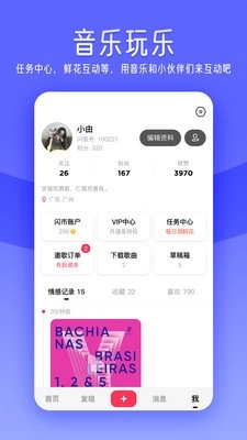 踏入【个人中心】,闪歌世界就此为你敞开,在这里,你将化身为明日之星。个人界面宛如你的专属音乐名片,而情感日志则是记录你每一个作品、每一段心情的珍贵所在。