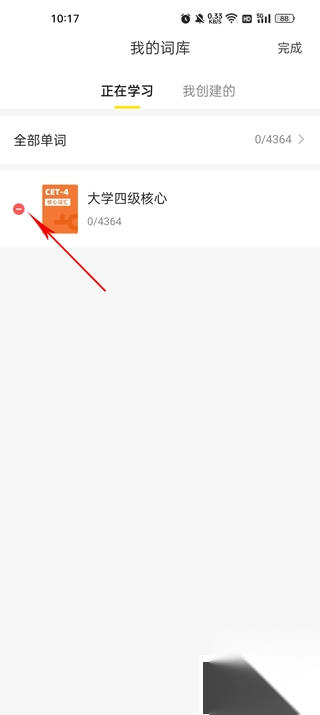 3、回到我的词库页面,点击右上角编辑,将原来的词库删除,即可完成换书。