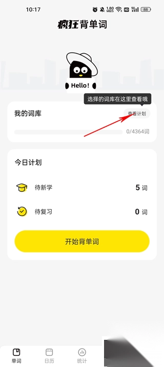 1. 开启软件,进入首页的查看计划板块,接着进入我的词库。
