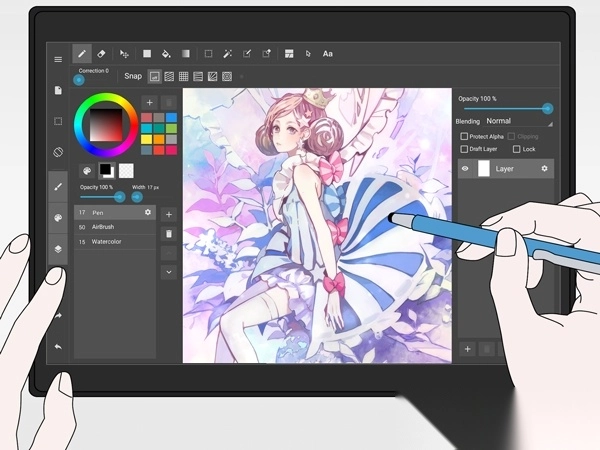 可隐藏颜色面板和图层视窗,即便是较小的Android 萤幕也能确保宽敞的作画面积。