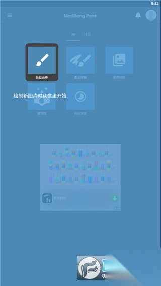 2、点击主屏幕左上角的“新建画布”,绘制新图片时从这里开始。