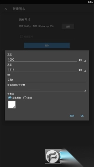 4、再点击新建画布,我们将从预设大小编辑画布的大小。