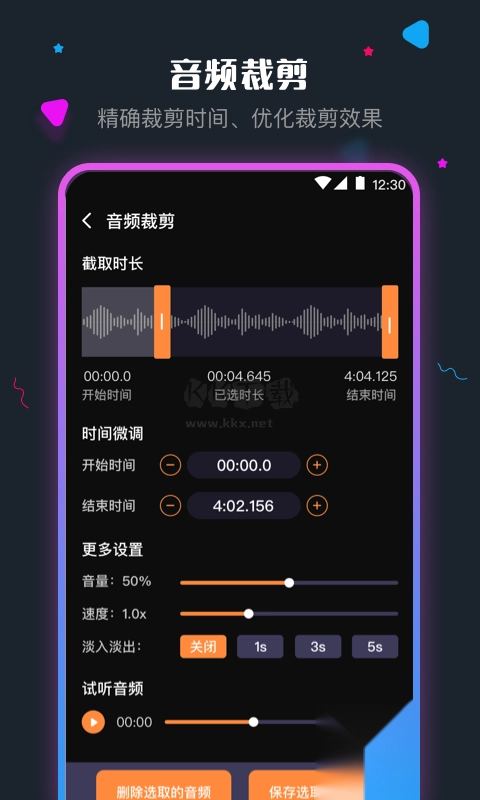 3. 音频剪切:在本地音乐库中,可自定义音频的裁剪范围,从而剪出你所需的特别精彩片段。