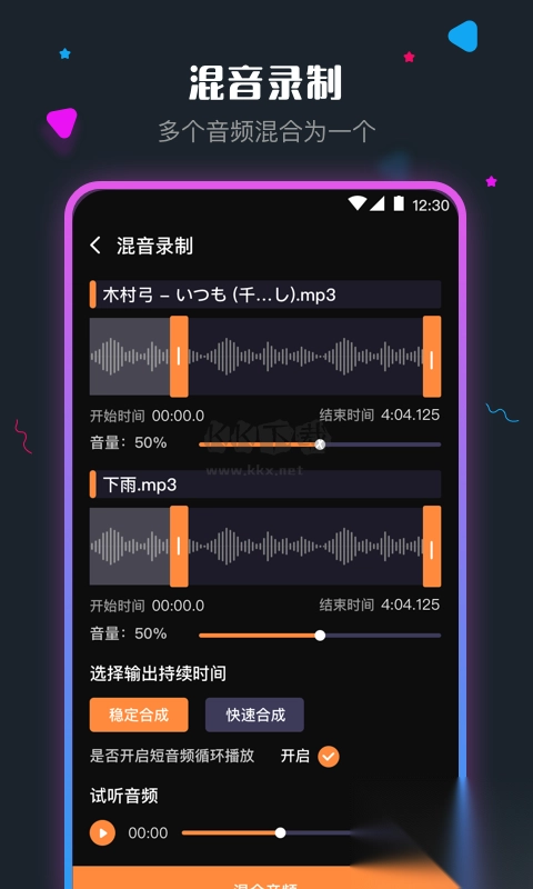2.音频混合:可将多种格式的音频音乐进行混合