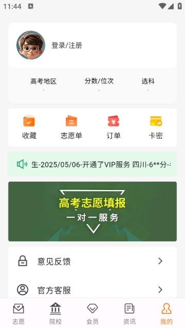软件提供了高考志愿的模拟填报,这里可以一键填报自己的高考资源,报考心仪的院校。