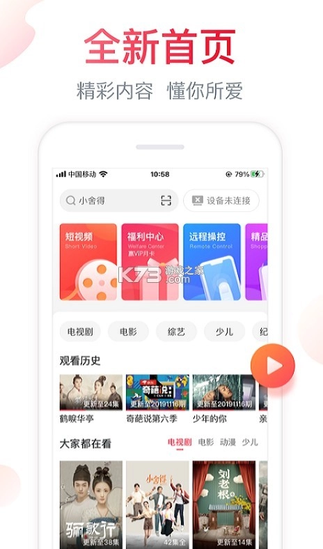 - 自拍美照、出游风景、手机录制的精彩视频,轻轻点击就能传到电视,与家人一同分享。还能自动获取电视端已安装应用,在手机端直接点击打开,也可进行更新、卸载操作,还能从手机端安装新应用到电视。