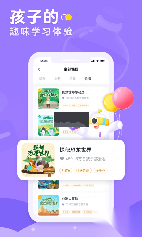 人文历史、自然科普、思维训练、兴趣培养、成长教育,更多主题等你来体验!