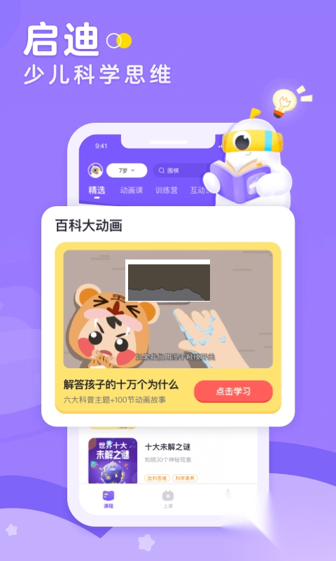 专为3-12岁孩子定制,趣味讲解+启蒙灌输,将知识点多维度呈现;同时用生动的画面,让知识动起来!
