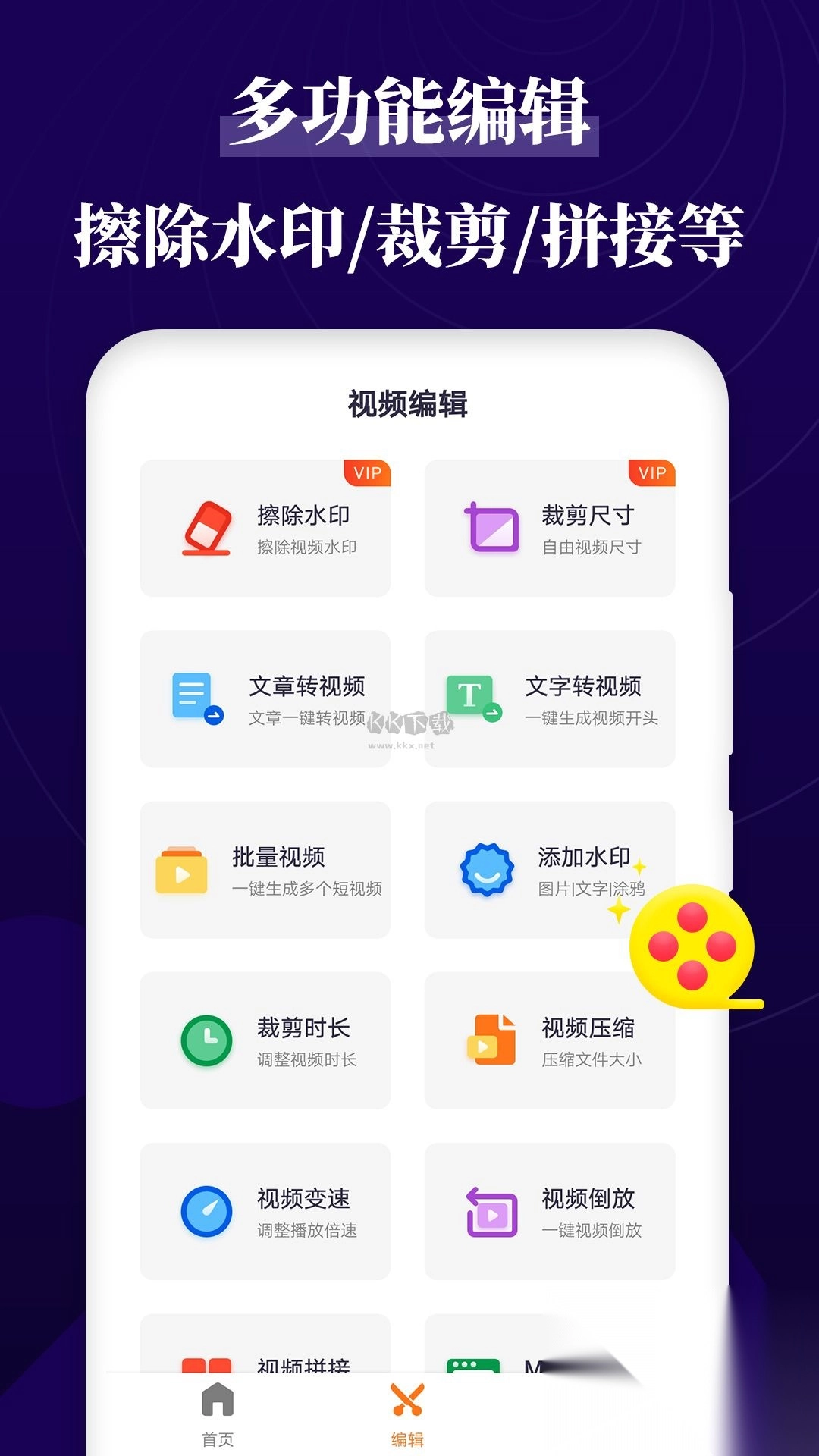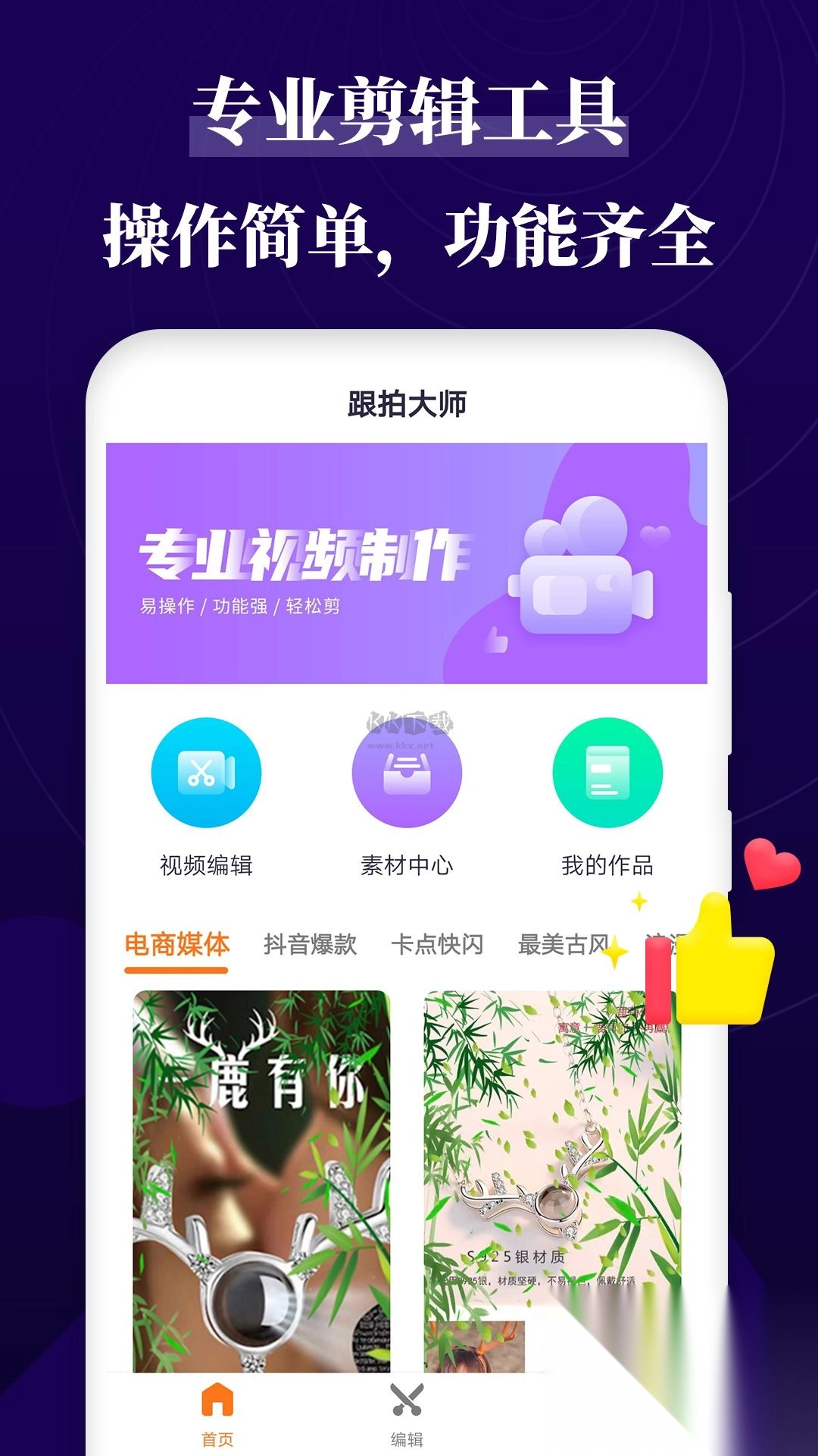 片段编辑、高品质效果、特色滤镜、视频模板制大片,应有尽有