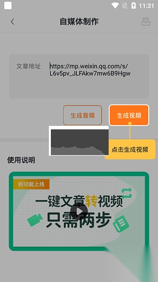 2、输入地址后点击生成视频即可。
