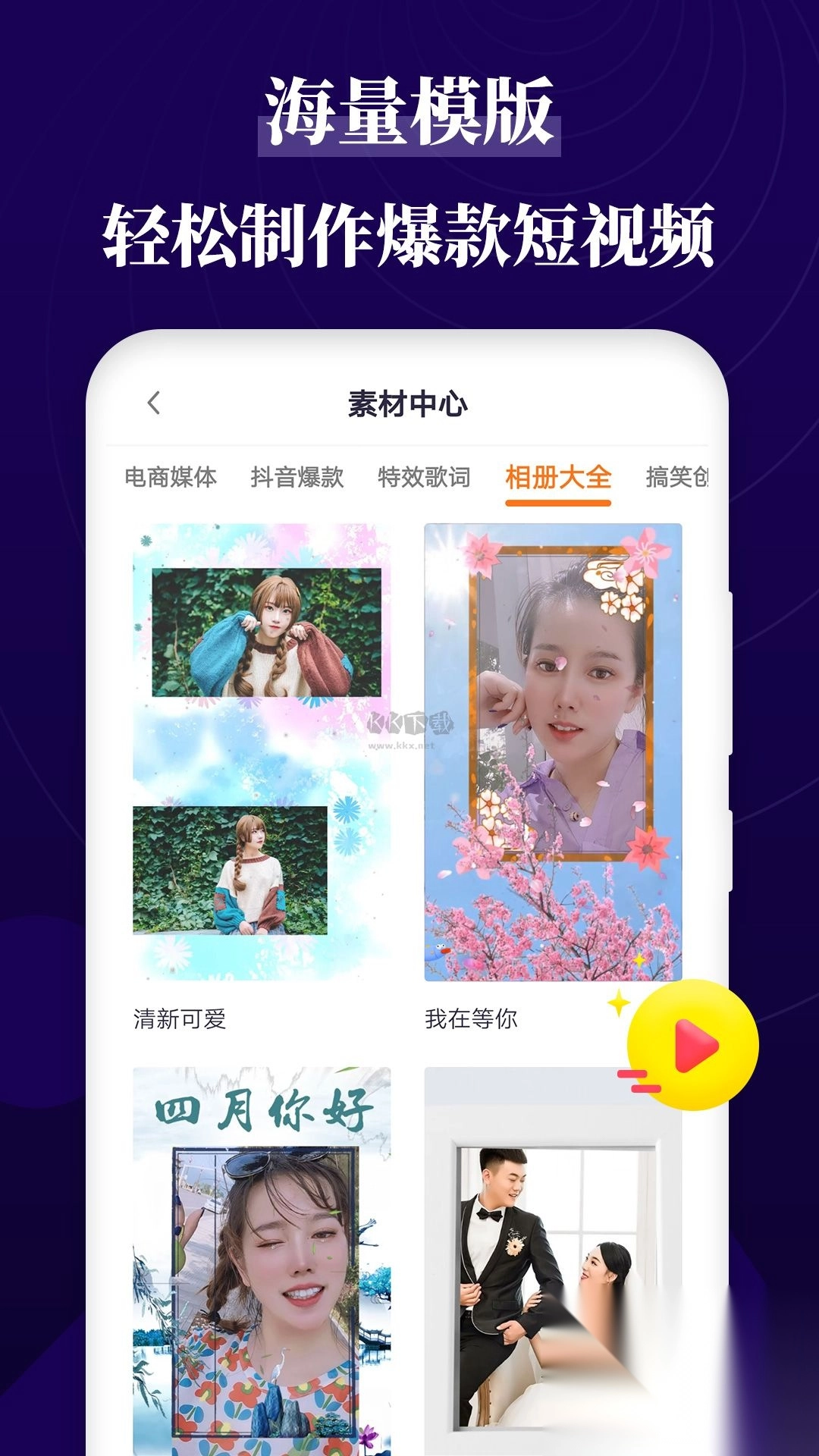 -模板包括电影大片、音乐相册、时下热门、节日主题等。